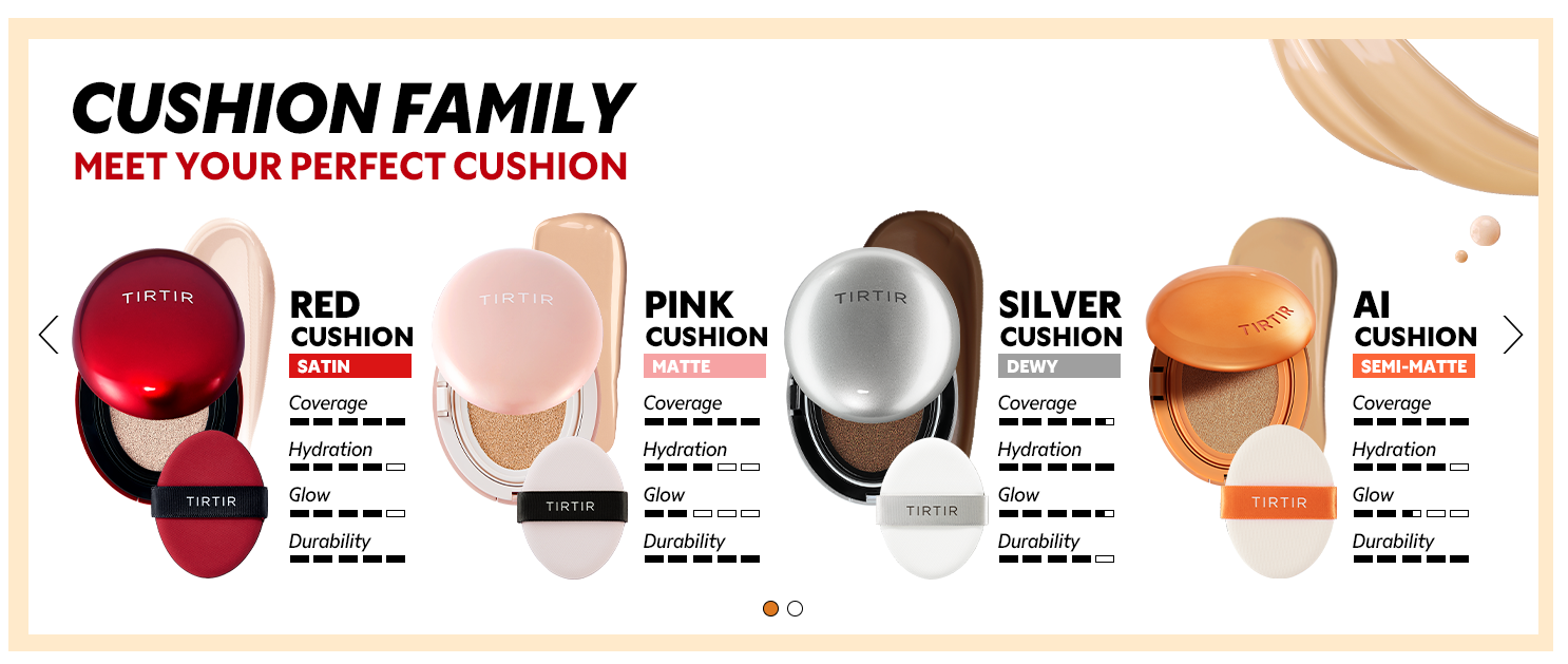 - [1st KOREAN CUSHION FOUNDATION με ΣΕΙΡΑ 40 ΑΠΟΧΡΩΣΕΩΝ] Το TIRTIR Mask Fit Red Cushion είναι το πρώτο κορεατικό μαξιλαράκι με μεγάλη γκάμα αποχρώσεων. Από ανοιχτόχρωμες έως βαθιές αποχρώσεις, αυτή η βάση μαξιλαριών TIRTIR παρέχει ισχυρή, άνετη κάλυψη γεμάτη με θρεπτικά συστατικά για άψογη χρήση όλη την ημέρα. Αποκτήστε την τέλεια εμφάνιση "γυάλινης επιδερμίδας" με αυτήν την πρωτοποριακή κορεάτικη λύση μακιγιάζ.