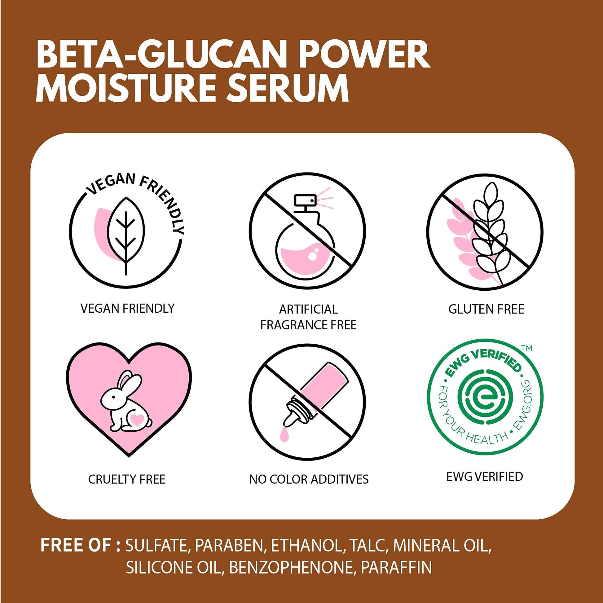 - HELE DAGEN LANG HYDRASJON: IUNIK Beta-glukan fuktighetsserum er formulert med 98 % betaglukan, soppgjærekstrakt. Det fuktighetsgivende serumet har null irriterende ting og ingen alkohol i formelen. Serumet gir fuktighet hele dagen og natten. Ansiktsserumet hjelper til med å gjenopprette fuktighet og bekjempe aldringstegn. Den fuktighetsgivende formelen vil absorberes dypt gjennom hudlaget på sekunder uten å tette porene eller tung følelse.